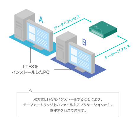 専用のバックアップソフトがなくても、LTFS*1をインストールしたPCやサーバであれば、
