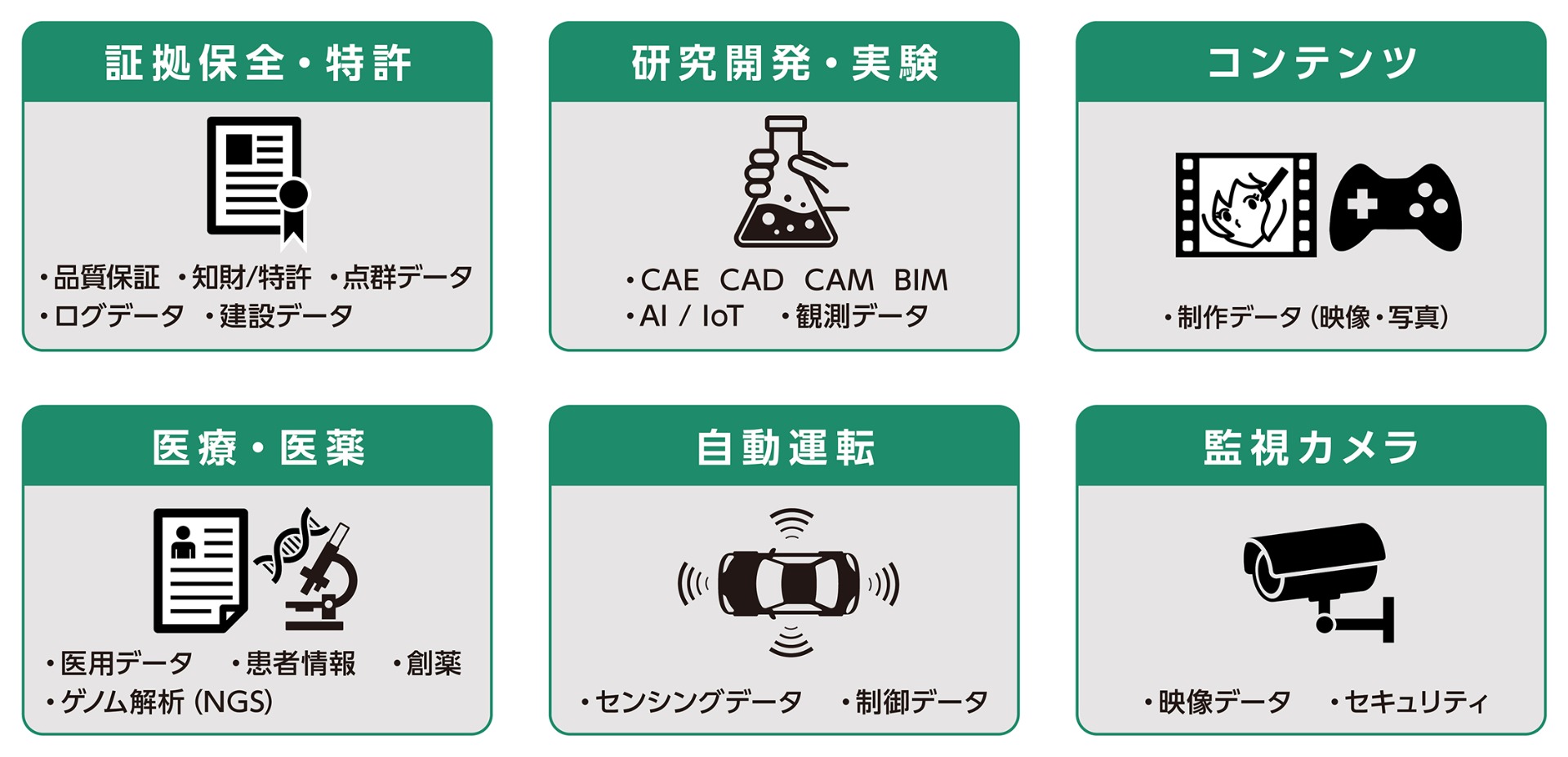 爆発的に増加するビッグデータを安全・安価に長期保管しながら積極的に活用することが可能です。
